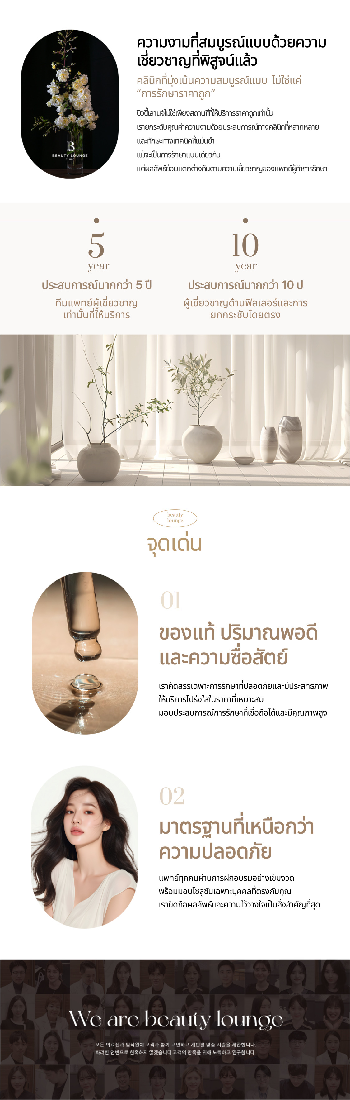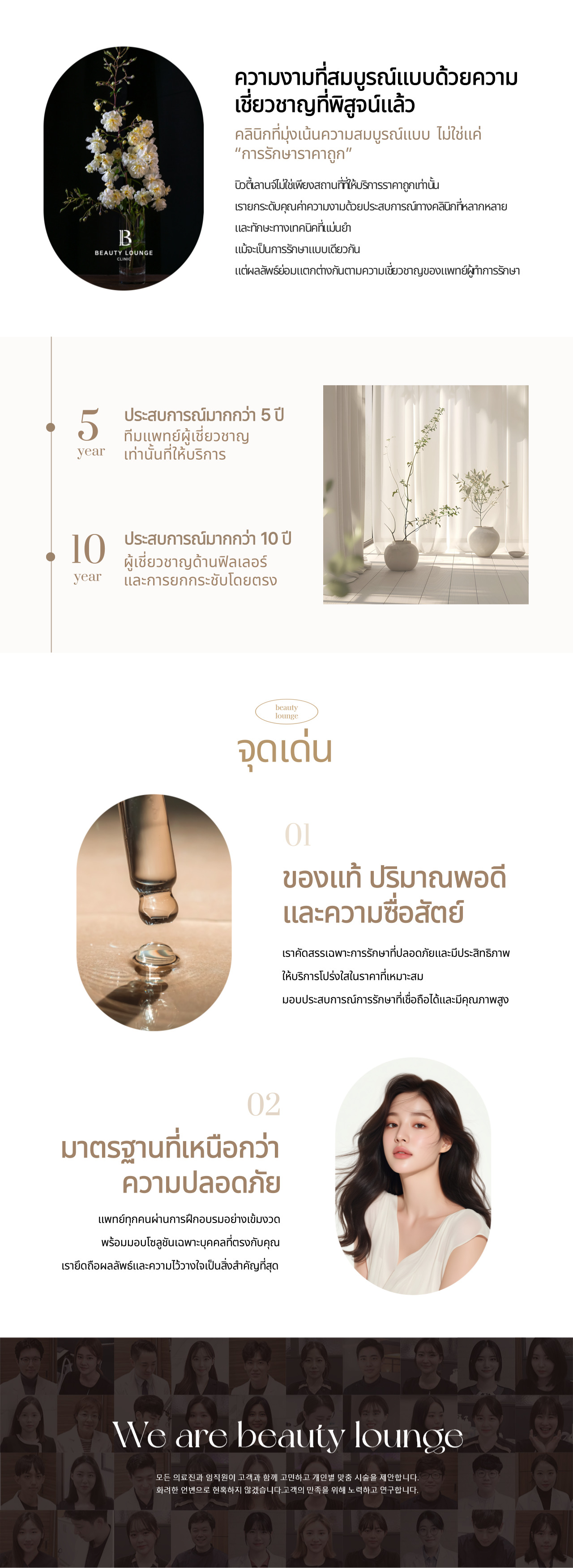 คลินิกบิวตี้เลานจ์ให้ความสำคัญต่อความพึงพอใจของลูกค้า,แพทย์ทำอย่างละเอียดและพนักงานที่เป็นมิตร